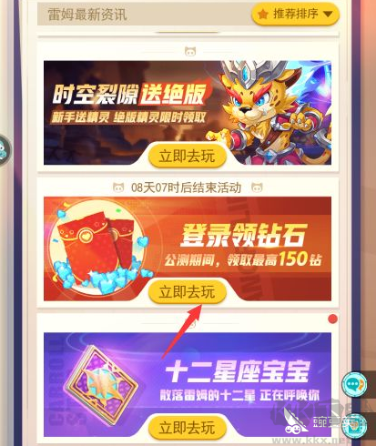 頁面上會出現(xiàn)多個活動,其中大家需要點擊登錄領鉆石的活動。至于其他活動,大家就可以忽略不計了,畢竟都是跟免費領取鉆石沒有關系的東西。