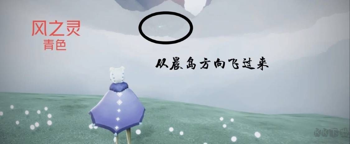 1、光遇手游中,風(fēng)之靈是青色光芒,位置在云野進(jìn)圖的后面圖中。詳情如下:
