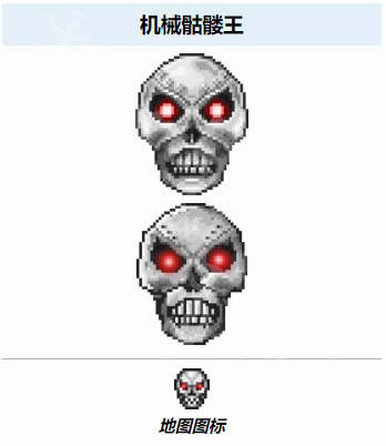 8.在黎明(凌晨 4:30)時,機械骷髏王會暴怒并持久地表現(xiàn)得像個地牢守衛(wèi)。速度提升,并且通常能接觸時秒殺玩家。它的傷害將提高到 1000 且其防御提高到 9999。它會維持這個狀態(tài)一直到被打敗,哪怕再次進入夜晚。當(dāng)然,如果被打敗,它會正常掉落物品。
