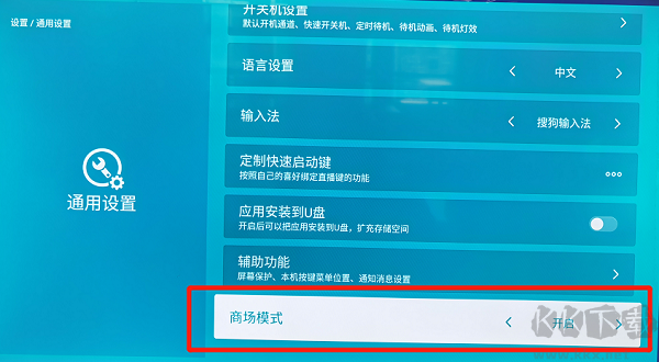2、下載好安裝包后,取下電腦上的U盤(pán),將U盤(pán)插入電視的USB接口,打開(kāi)電視找到 我的應(yīng)用設(shè)置通用設(shè)置開(kāi)啟商場(chǎng)模式