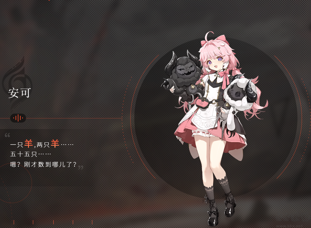安可-黑海岸成員,單純可愛,一黑一白兩只羊咩時常陪伴在她的左右。痛苦的過往幻化成黑咩,和單純善良的白咩本性互相角力。如黎明刺破黑夜,安可的元氣開朗照耀四周,但鮮少有人知道他直面黑暗的恐懼。
