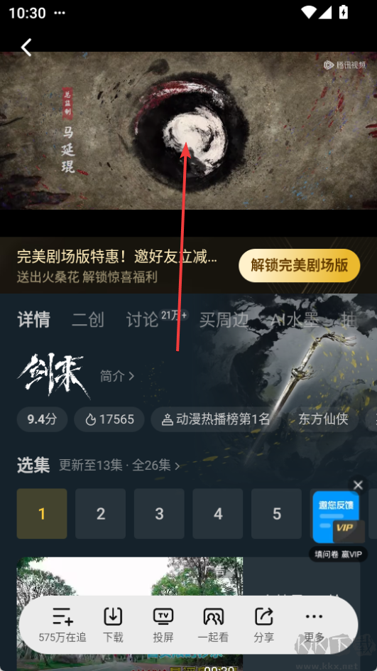 1、打開騰訊視頻app,播放想要投屏的視頻