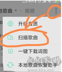 2、點(diǎn)擊右上角的三個點(diǎn),然后選擇“掃描歌曲”選項(xiàng);