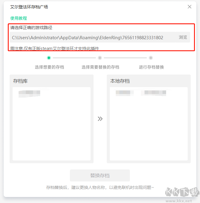 4.需注意,艾爾登法環(huán)存檔替換工具不建議頻繁使用,頻繁更換存檔可能有風(fēng)險;同時,在使用工具前,請先退出艾爾登法環(huán);在進行存檔替換后,也建議您更換任務(wù)名稱,以免聯(lián)機時出現(xiàn)問題。使用存檔廣場即默認您已知曉替換存檔帶來的風(fēng)險。