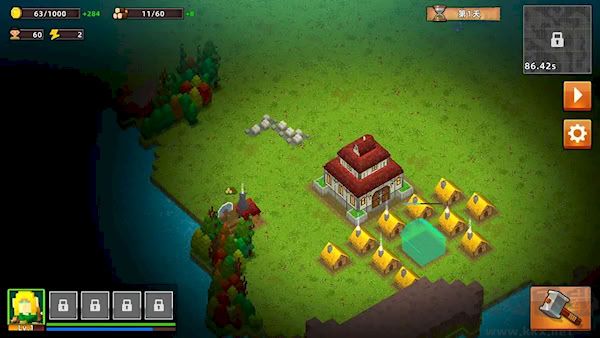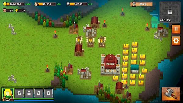把防御塔和后面的建筑升級,怪也幾乎打不到城墻了
