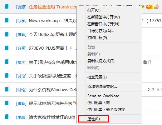 1、首獲取你要查看貼子的網(wǎng)址;右鍵點(diǎn)擊連接,屬性