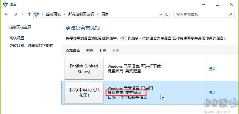 將中文語言上移到首項(xiàng),刪除“English(UnitedStates)”語言項(xiàng),設(shè)置完畢。這樣中文(美式鍵盤)即是系統(tǒng)默認(rèn)的首項(xiàng)輸入法了,可以通過按“Ctrl+Shift”或者“Win+空格”來切換到微軟拼音。