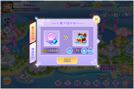 當(dāng)然最大的亮點(diǎn)還要看受贈(zèng)方了——玩家所獲得的舞力值可以直接兌換樂鉆!對(duì),你沒有看錯(cuò),不是樂幣、不是綁鉆,就是實(shí)打?qū)嵉臉枫@!