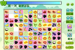 水果連連看3綠色版是一款精簡小巧的連連看益智類游戲,是以果樹為主的游戲,里面有:櫻桃、香蕉、橙子、菠蘿、草莓 鼠標左鍵點擊兩個相同的圖案,如果圖案之間的連線轉(zhuǎn)折不超過2次且不經(jīng)過其他圖案,即可消除,